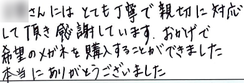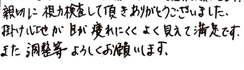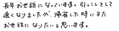 「長年お世話になっています。引っ越しをして遠くなりましたが、帰省した時にまたお世話になりたいと思います。」 A様
