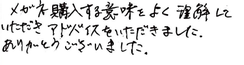 「よく見えて掛け心地も重くなくて良いです。接客も丁寧で良かったです。」 H様